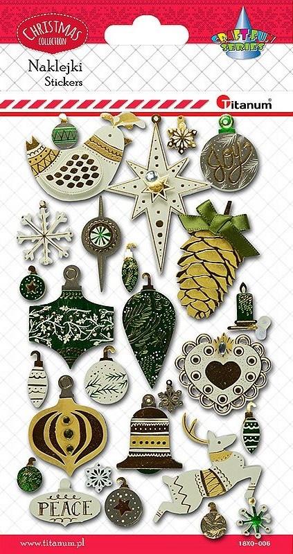 Naklejki dekoracyjne wykonane z grubego papieru klejonego warstwowo, dzięki czemu mają efekt 3D. Wzór: bombki i zawieszki choinkowe. Kolor: mix. Wymiary: mix. Blister 27 szt.