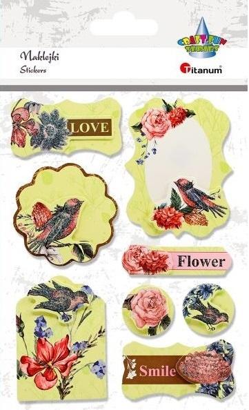 Opakowanie Naklejki papierowe 3D ramki kwiaty, ptaki 8szt