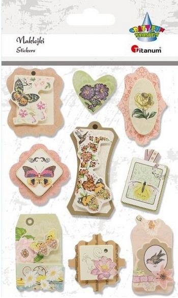 Naklejki papierowe 3D na piance 3D ramki (handmade) kwiatymotyle różzieleńbrąz 9szt.