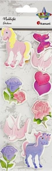 Naklejki papierowe 3D na piance 3D pegaz, konik, jaskółki, róże, serce, motyl z brokatem 9szt.