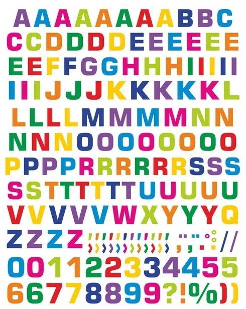 naklejki papierowe - alfabet, znaki diakrytyczne, cyfry, arkusz A4