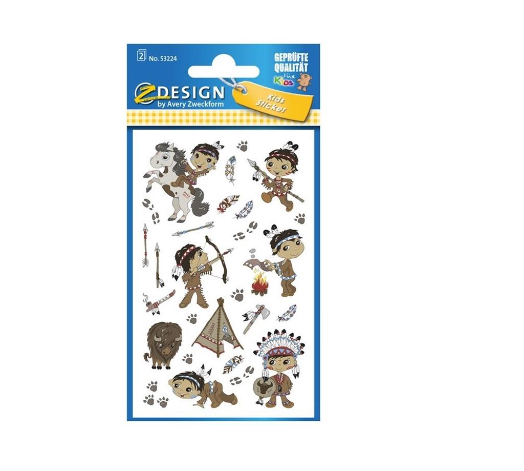 Naklejek w opakowaniu, papierowe, trwały klej, z motywem Indian. Naklejki skierowane do dzieci - do zabawy, nauczania i kreatywności.