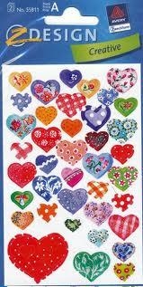 Naklejki papierowe , kolorowe, błyszczące Serca