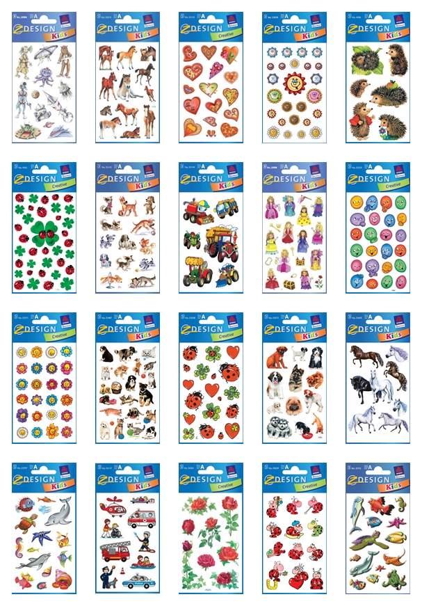 Plakietki samoprzylepne do ozdabiania, zabawy, majsterkowania. Dla dzieci w wieku powyżej 3 lat.