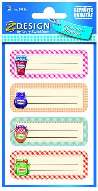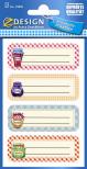 Kolorowe naklejki o różnych wzorach przeznaczone do oznaczania słoików, przetworów itp.