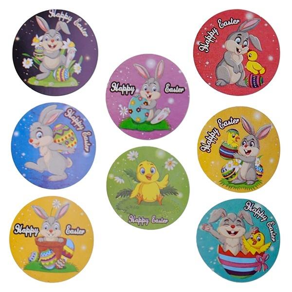 Naklejki papierowe na taśmie 8 wzorów Wielkanoc O25mm 500szt.