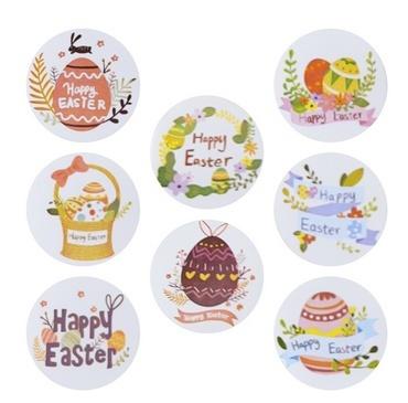 Naklejki papierowe na taśmie 8 wzorów Wielkanoc O25mm 500szt.