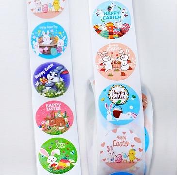 Naklejki papierowe na taśmie 8 wzorów Wielkanoc O25mm 500szt.