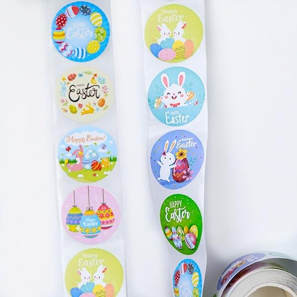 Naklejki papierowe na taśmie 8 wzorów Wielkanoc O25mm 500szt.