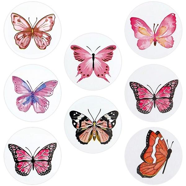 Naklejki papierowe na taśmie 7 wzorów motyle O25mm 500szt.