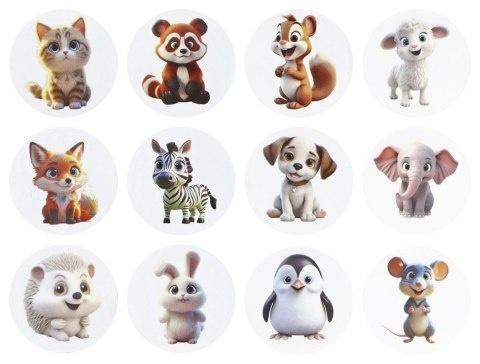 Naklejki papierowe na taśmie 12 wzorów O25mm słodkie zwierzątka 500szt.