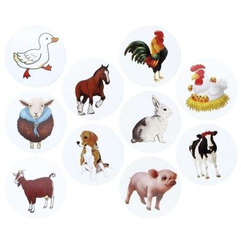 Naklejki papierowe na taśmie 10 wzorów O25mm rozmiarów zwierzęta gospodarskie 500szt.