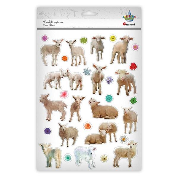 Naklejki papierowe: owce, kwiaty, 31 szt.
