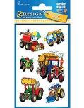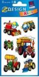 Naklejki papierowe w kształcie pojazdów rolniczych.
