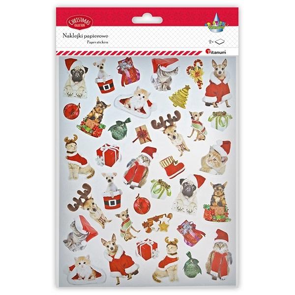 Opakowanie Naklejki papierowe świątecznie psy i koty 72szt