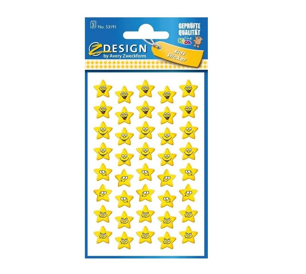 3 arkusze naklejek w gwiazdki z wesołymi minkami.