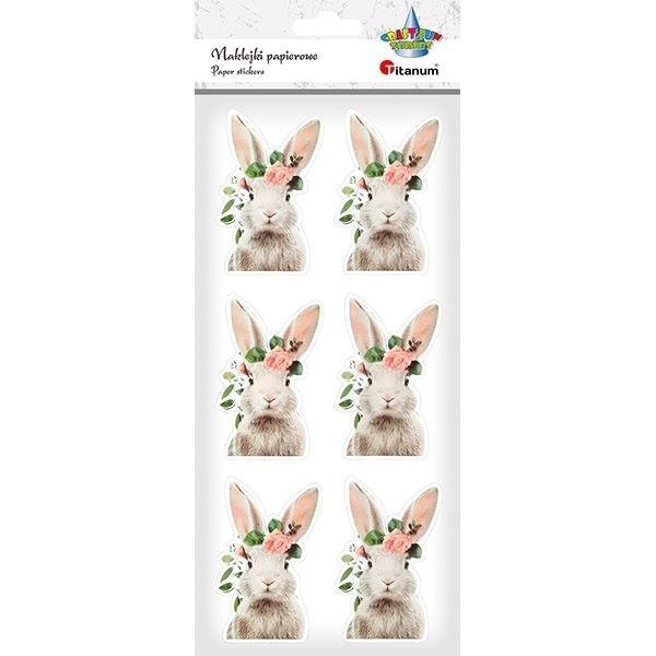 Naklejki papierowe: zając - popiersie z kwiatami na głowie, 6 szt.