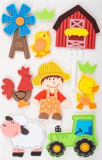 miks piankowych naklejek 3D, rozmiar ok. 2 - 6 cm, grubość 2 mm, 10 szt.