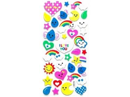 35 szt. brokatowych naklejek piankowych, rozmiar naklejki ok. 3 cm, grubość 2 mm