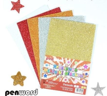 Naklejki piankowe brokatowe gwiazdki 20,3 x 31,2cm mix 5 kol.