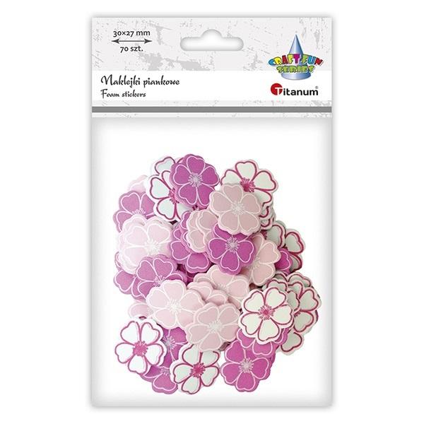 Naklejki piankowe Kwiaty 30x27mm bladoróżowe, różowe, biało-różowe 70szt.