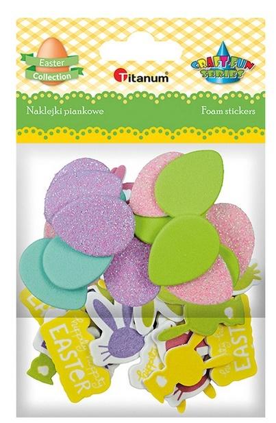 Naklejki piankowe pisanki 19x25mm, zajączki 16x32mm, głowy zająca 25x30mm, napisy 32x19mm "hippity hoppaty EASTER"