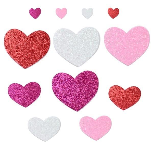 Naklejki piankowe serca brokatowe 3 kolory 15x13/38x28/55x50mm 100szt.