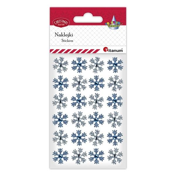 Naklejki płatki śniegu z kryształkiem 21mm białe, niebieskie 24szt.