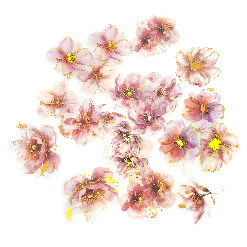 Naklejki z wysokiej jakości transparentnej folii PET niezwykle piękne grafiki kwiatowe z bogatymi złoceniami w delikatnych pastelowych odcieniach różu to absolutny must have każdego twórcy.