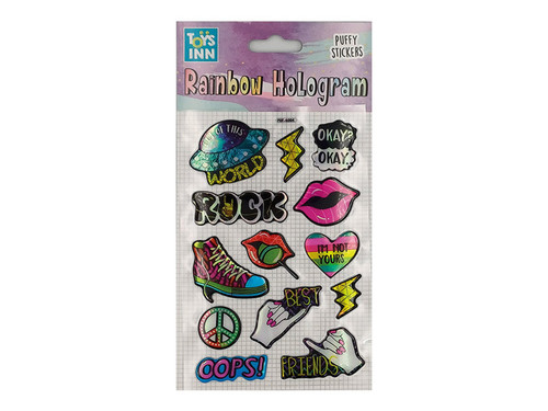 Naklejki holograficzne Rock, to idealna dekoracja pamiętników, albumów, zeszytów czy telefonów. W zestawie znajduje się około 10 szt kolorowych naklejek o różnych kształtach. Holograficzna powłoka z efektem tęczy zmienia ich kolory w zależności od kąta padania światła, dzięki temu naklejki są oryginalną, przyciągającą wzrok ozdobą. Naklejki wykonane zostały z wysokiej jakości materiałów, które są trwałe i odporne na zniszczenia