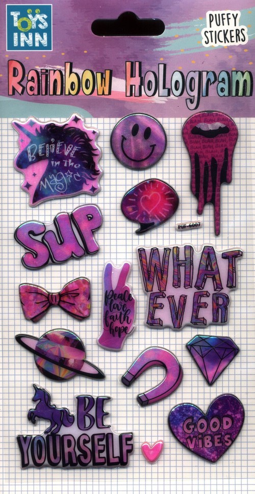 Naklejki holograficzne Unicorn, to idealna dekoracja pamiętników, albumów czy zeszytów. W zestawie znajduje się około 10 szt kolorowych naklejek o różnych kształtach. Holograficzna powłoka z efektem tęczy zmienia ich kolory w zależności od kąta padania światła, dzięki temu naklejki są oryginalną, przyciągającą wzrok ozdobą. Naklejki wykonane zostały z wysokiej jakości materiałów, które są trwałe i odporne na zniszczenia