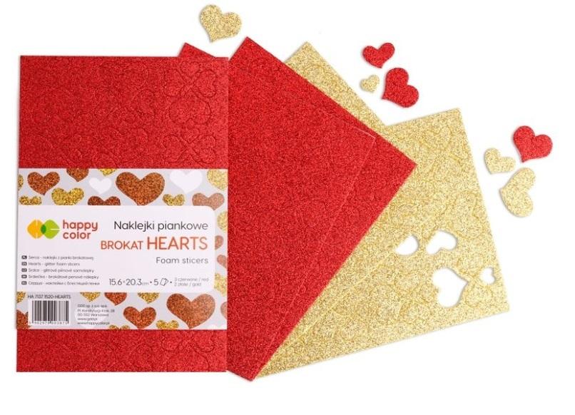 Naklejki Serca brokatowe A5/5K mix HAPPY COLOR