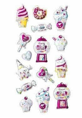 Naklejki shaker 3D z rozmaitych słodkości takich jak lody, lizaki i cukierki to absolutny HIT, doskonały do zdobienia, albumów kartek okolicznościowych, zaproszeń czy też opakowań prezentowych.
