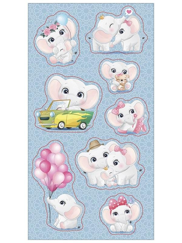 Zestaw naklejek do ozdoby zeszytów, albumów, listów, pocztówek ... 8 naklejek z małymi słonikami