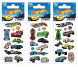 Naklejki z samochodami Hot Wheels, ozdobione srebrną obwódką.