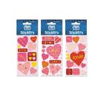 Naklejki z sercami ozdobione srebrną obwódką.