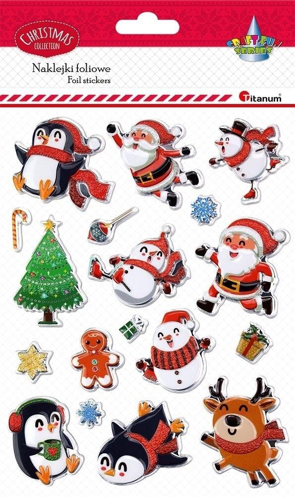 Naklejki wypukłe Mikołaj, bałwanki, Ciastek, pingwin, choinka, renifery 17szt.