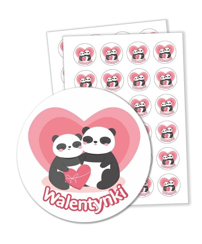 Duży zestaw 48 naklejek walentynkowych ze słodkimi pandami idealne jako ozdoba do Walentynek.