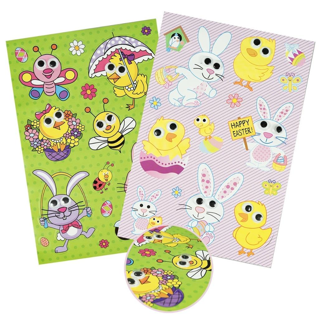 Zabawne naklejki wielkanocne na arkuszu o wymiarach 22x14 cm to kolorowa i oryginalna dekoracja. Ruszające się oczka dodają im unikalnego uroku, czyniąc je idealnym dodatkiem do kreatywnych prac plastycznych, takich jak ozdabianie kartek, koszyczków czy innych wielkanocnych kompozycji.