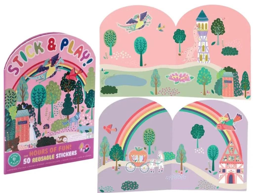 Zestaw Naklejek Wielokrotnego Użytku z planszami to świetna zabawa i nauka jednocześnie. W skład zestawu wchodzi ponad 50 zabawnych naklejek, w tym księżniczki, latające smoki, bajeczne ptaki, jelenie, koń, powóz i wiele innych, oraz 2 rozkładane plansze ilustrujące bajkowy świat do tworzenia i wymyślania historii za pomocą naklejek. Naklejki można łatwo umieszczać, nakładać na siebie i zmieniać ich położenie. Dodatkową atrakcją jest dopasowywanie naklejek do ich kształtów na kartach do przechowywania, co zapewni maluchom rozrywkę na długie godziny! Zestaw daje dzieciom nieograniczone możliwości wyrażania swojej kreatywności, ćwiczy koncentrację i wyobraźnię, a także rozwija małą motorykę. Zapakowany jest w twardą okładkę, składa się całkowicie na płasko, dzięki czemu idealnie sprawdzi się w podróży.                                                                                                               Cechy: