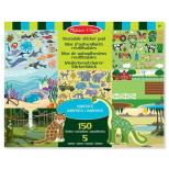 Odwiedź farmę, prehistoryczny krajobraz, pustynną oazę, dżunglę lub ciemnoniebieskie morze, wszystko w tej interaktywnej książeczce z naklejkami! Błyszczące, kolorowe tła są gotowe do wypełnienia ponad 150 naklejkami. Umieść dinozaura w prehistorycznym stawie a rekina w oceanie - lub wymieszaj i stwórz sceny, które są nieprawdopodobne. Winylowe naklejki są łatwe do oderwania, do wielokrotnego odklejania i przyklejania. Dzięki temu dzieci będą mogły zmieniać swoje krajobrazy, wymyślać nowe historie. Pobudzająca wyobraźnię, kreująca twórcze myślenie zabawa wspomaga również rozwój małej motoryki. Zachęca do odkrywania świata, dowiadywania się na temat zwierząt i ich otoczenia.