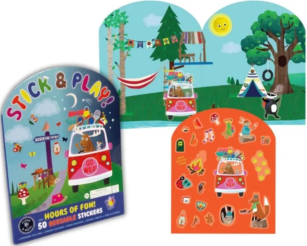 Zestaw Naklejek Wielokrotnego Użytku z planszami to świetna zabawa i nauka jednocześnie. W skład zestawu wchodzi ponad 50 zabawnych naklejek, w tym wesołe zwierzaki, kolorowy autobus, wszystko co jest potrzebne na biwak w lesie i wiele innych, oraz 2 rozkładane plansze ilustrujące leśny biwak do tworzenia i wymyślania historii za pomocą naklejek. Naklejki można łatwo umieszczać, nakładać na siebie i zmieniać ich położenie. Dodatkową atrakcją jest dopasowywanie naklejek do ich kształtów na kartach do przechowywania, co zapewni maluchom rozrywkę na długie godziny! Zestaw daje dzieciom nieograniczone możliwości wyrażania swojej kreatywności, ćwiczy koncentrację i wyobraźnię, a także rozwija małą motorykę. Zapakowany jest w twardą okładkę, składa się całkowicie na płasko, dzięki czemu idealnie sprawdzi się w podróży.                                                                            Cechy: