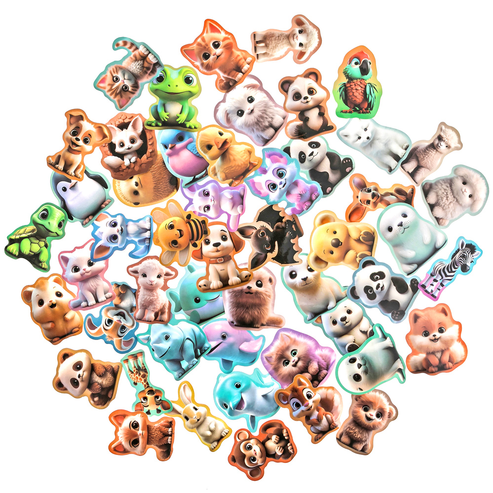 Naklejki winylowe - kreskówkowe zwierzątka 4-6 cm, 50 szt