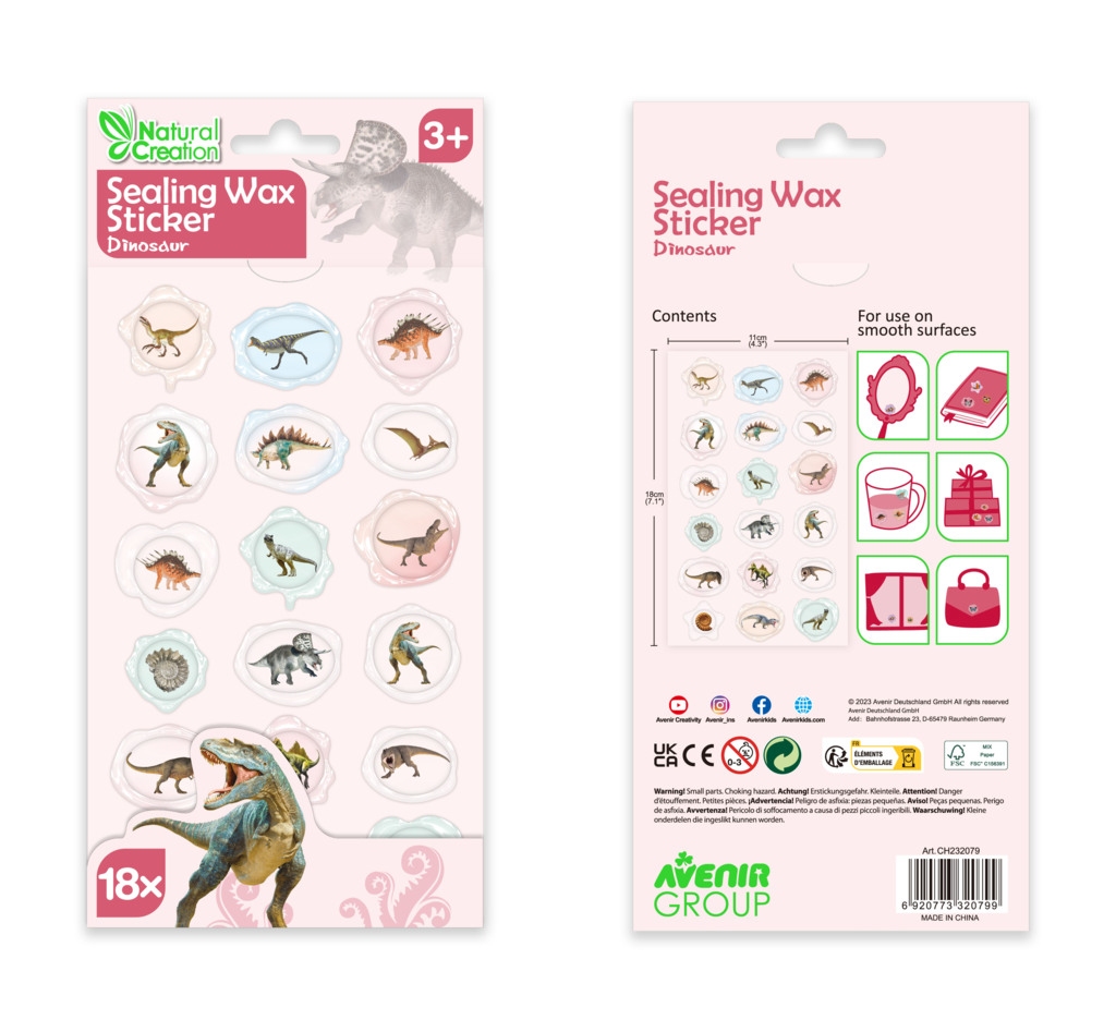 Dzieci kochają naklejki, zdrapywane naklejki, 3D naklejki oraz niezwykłe naklejki woskowe. W zestawie 18 sztuk woskowych naklejek dinozaurów.