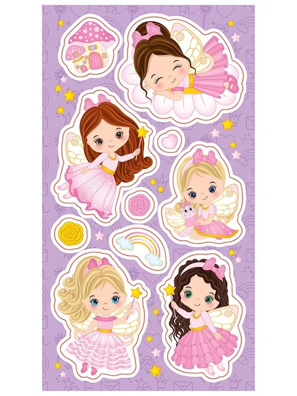Zestaw naklejek do ozdoby zeszytów, albumów, listów, pocztówek - 5 wróżek i ozdobniki.