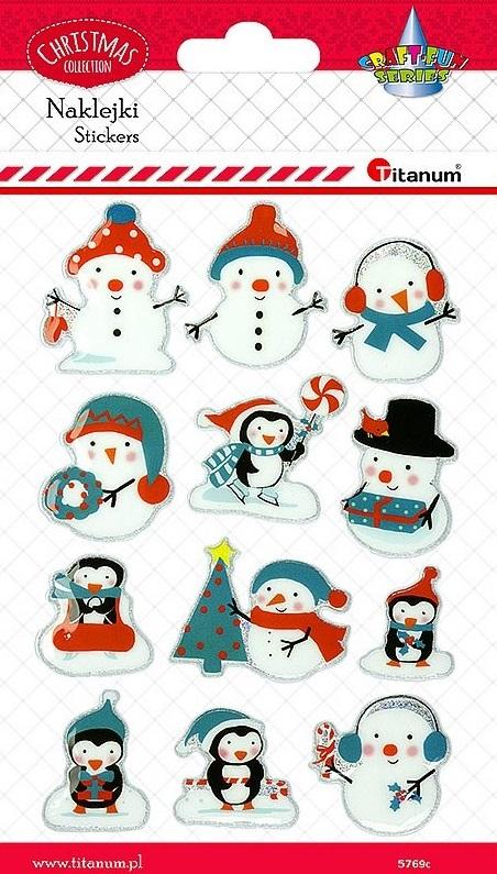Opakowanie Naklejki wypukłe bałwanki, pingwiny 12szt.