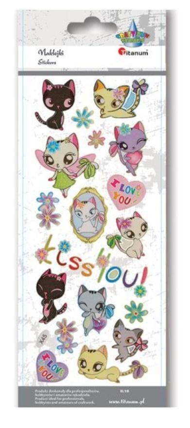 Opakowanie Naklejki wypukłe miękkie koty, serca, kwiaty 20szt