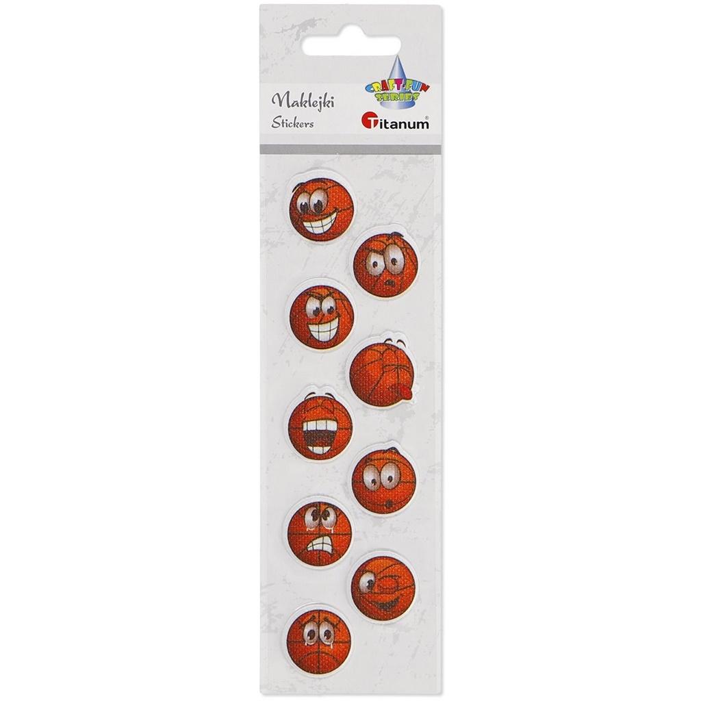 Naklejki wypukłe miękkie. Kształty: piłki koszykowe emotikony, kolory: mix. 9 sztuk.
