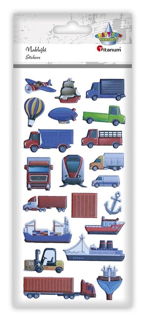 Naklejki wypukłe miękkie pojazdy jeżdżące, latające i pływające 21szt.