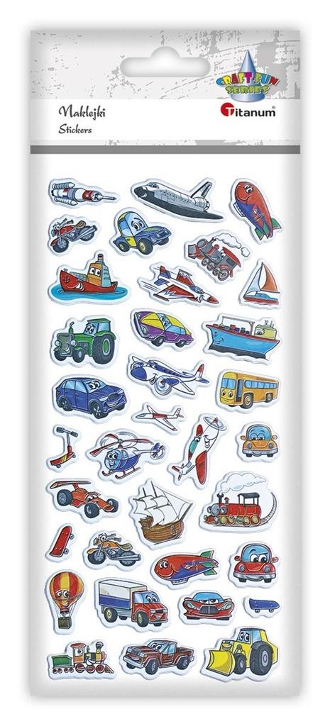 Naklejki wypukłe miękkie pojazdy jeżdżące, latające, pływające 34szt.